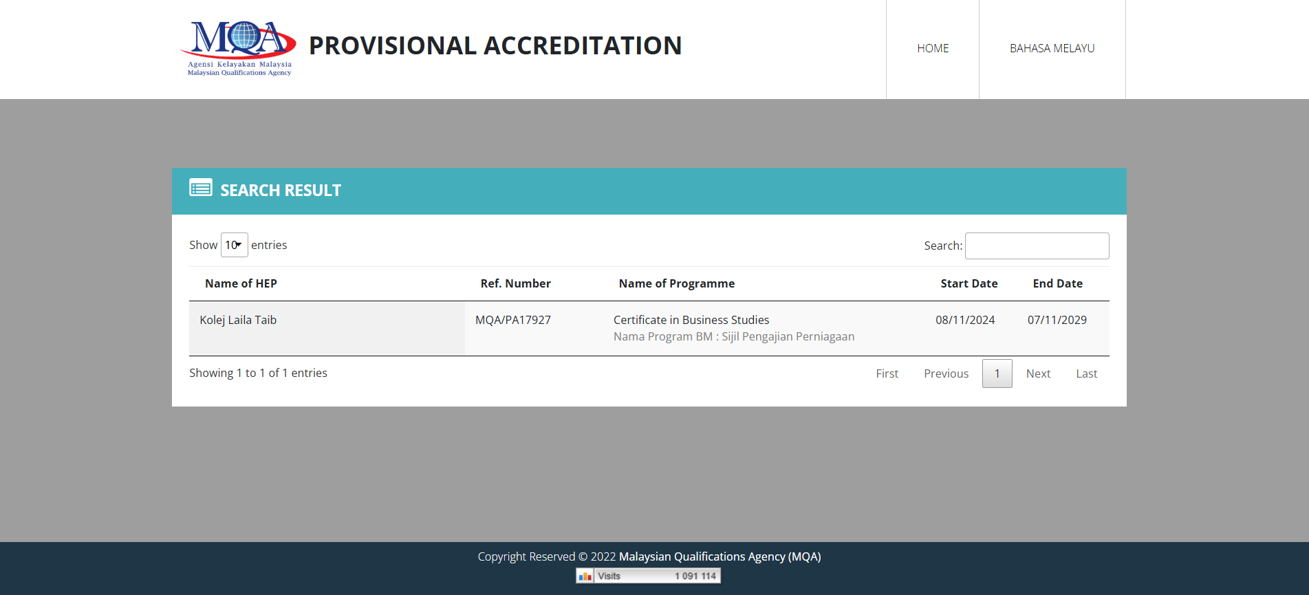 Our programme has obtained Provisional Accreditation from Malaysia Qualifications Agency (MQA).Â